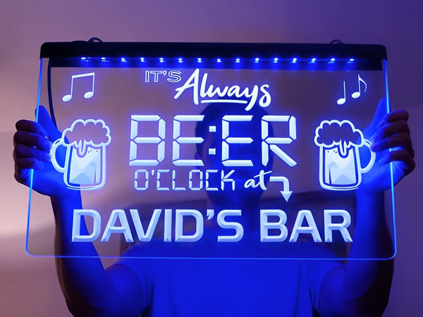 It's Always Beer O'clock at My Bar Personalized Illuminated Sign